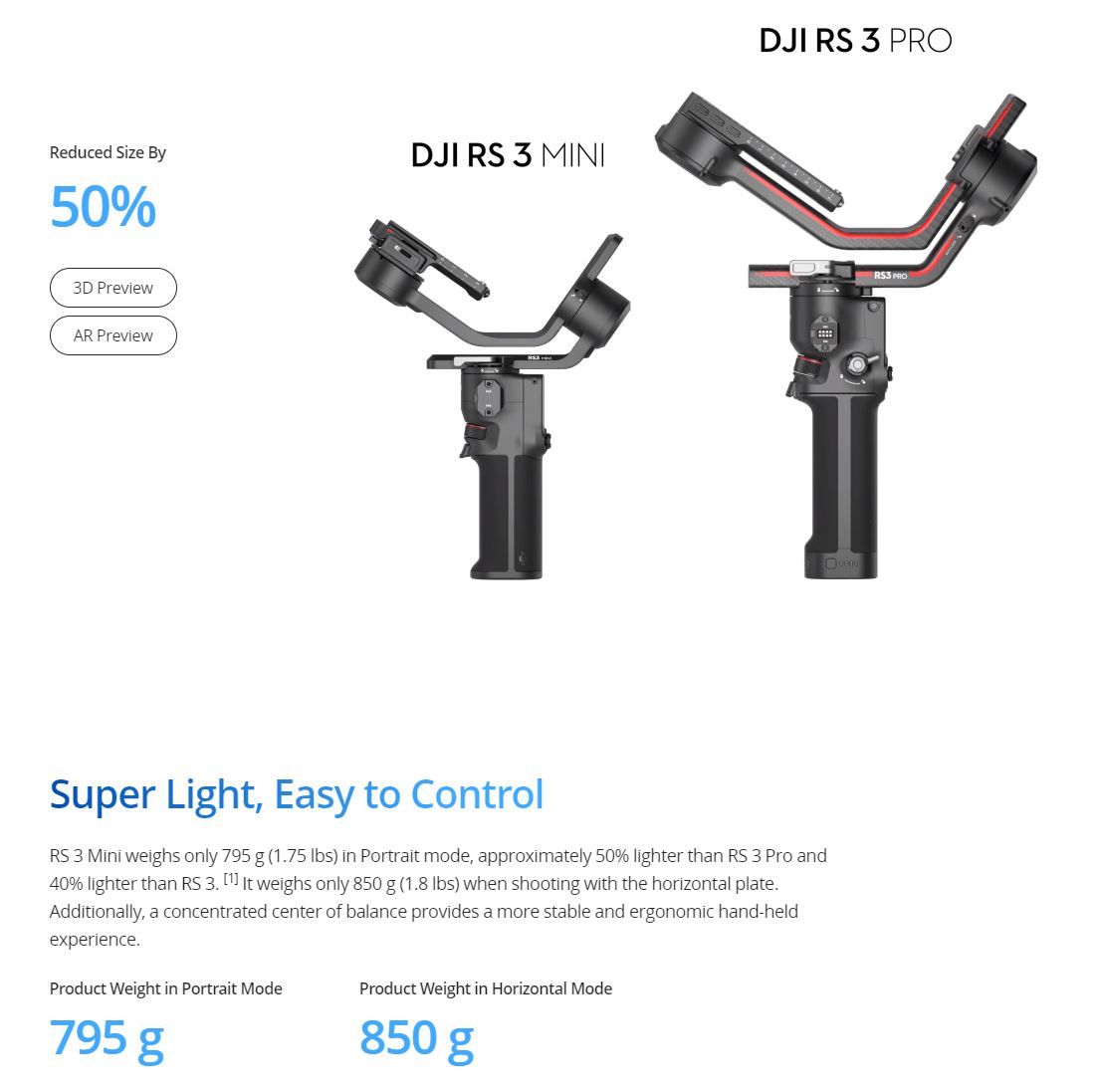 تم إعادة تصميم مجموعة المثبت لتكون أكثر أناقة وقوة من مثبت رونين، حيث يزن جسمها المصنوع من ألياف الكربون 3.3 رطل فقط وحمولة تصل إلى 10 أرطال. هذا المثبت المدمج قوي بما يكفي لدعم وتثبيت الكاميرات متوسطة الحجم مثل سوني إف إكس 6 أو كانون سي 70 مع عدسة تكبير 24-70 مم