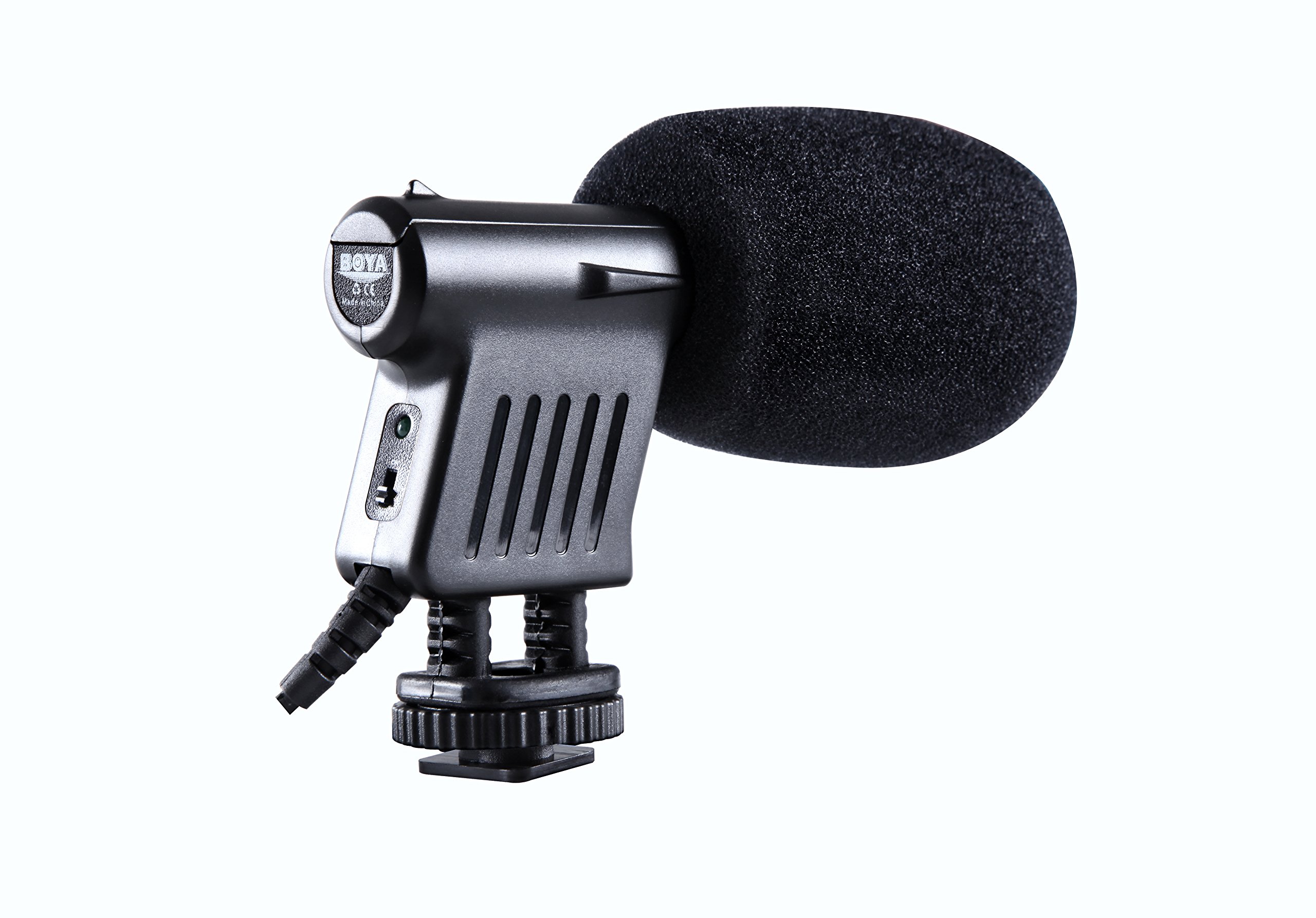مفتاح كسب ثلاثي المستويات يوفر تعزيزًا بمقدار +20 ديسيبل، أو كسبًا موحدًا بمقدار 0 ديسيبل، أو وسادة بمقدار -10 ديسيبل لمنع التشويه الناتج عن التحميل الزائد للصوت مرشح تمرير عالي قابل للتبديل عند 80 هرتز لتقليل الضوضاء منخفضة التردد غير المرغوب فيها والهدير ميكروفون خفيف الوزن يتم توصيله بالكاميرا باستخدام كابل ينتهي بمقبس ميكروفون مقاس 1/8 بوصة مقاس 3.5 مم