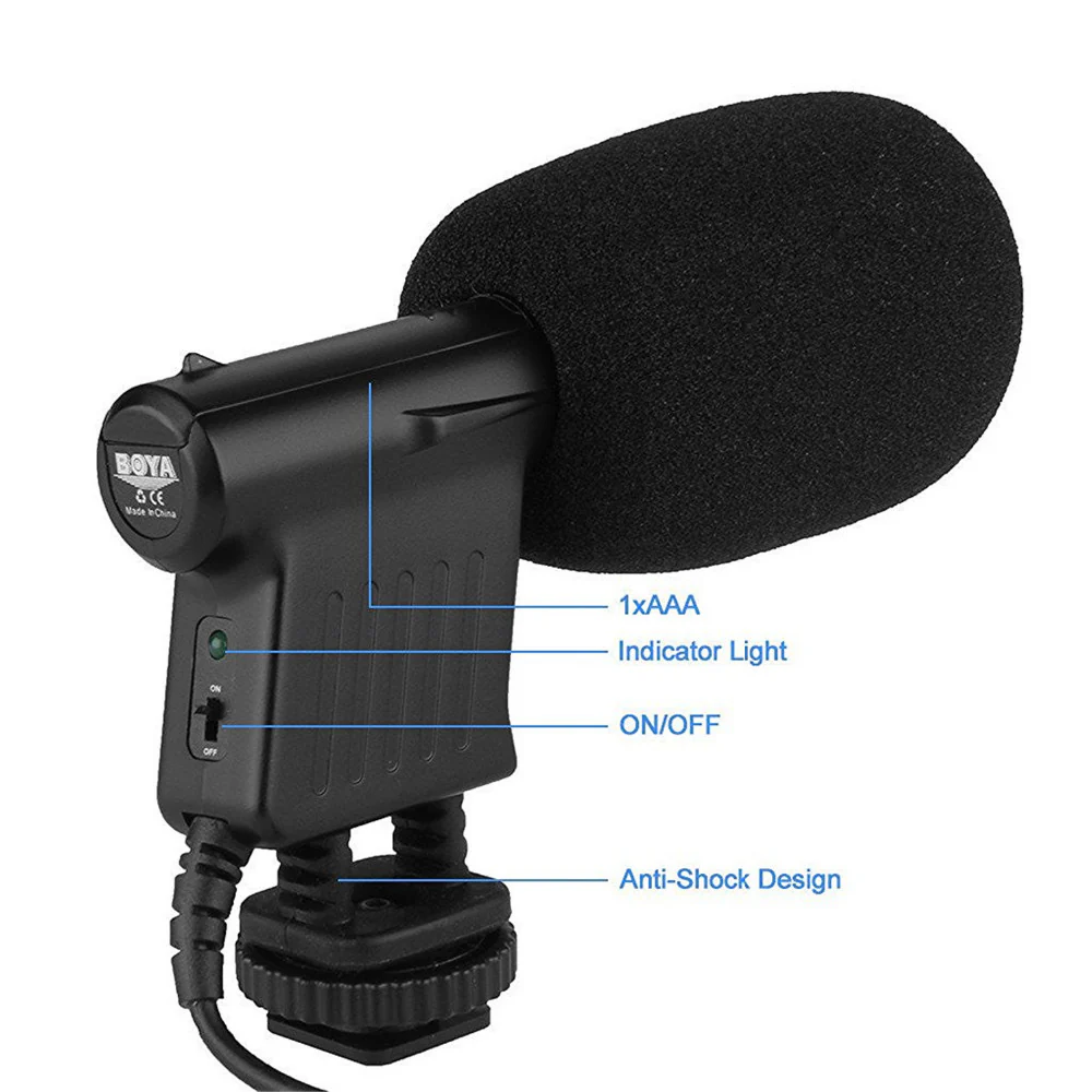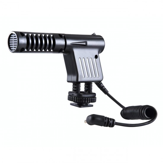 ميكروفون مكثف أحادي الاتجاه مصنوع من البلاستيك الأسود والكمبيوتر الشخصي، مع حذاء بارد للتثبيت العالمي تثبيت مبطّن مضاد للاهتزاز يسمح الزجاج الأمامي بتقليل الضوضاء