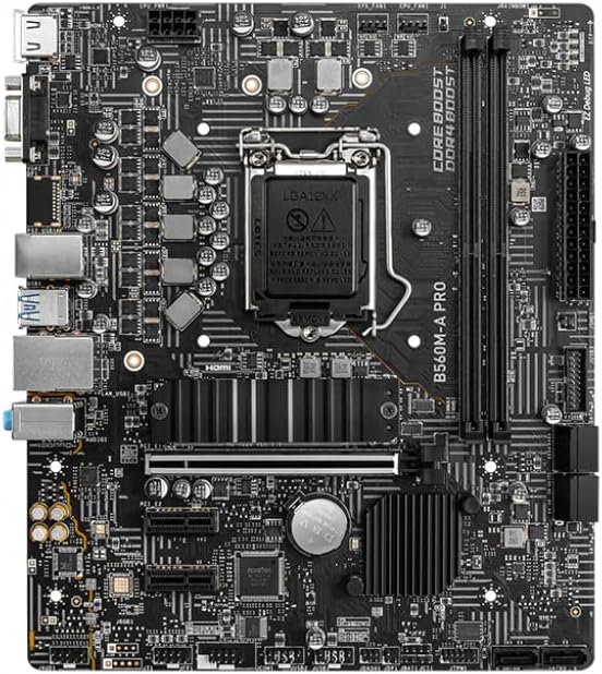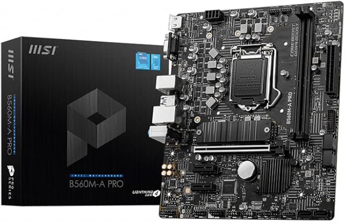 | Model: | B560M-A PRO | Brand | MSI | CPU Socket | LGA 1200 | Compatible Devices | Personal Computer | RAM Memory Technology | DDR4 | Compatible Processors | Intel Celeron | Chipset Type | Intel B560 | Memory Clock Speed | 5200 MHz | Platform | Windows 10 | CPU Model | Pentium | Memory Storage Capacity | 64 GB |